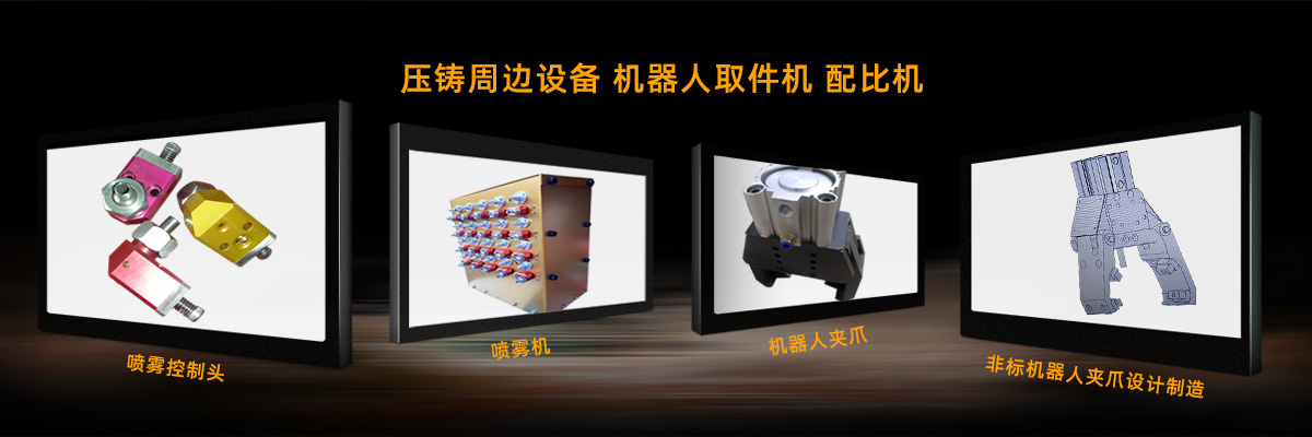 3.壓鑄周邊設(shè)備:脫模劑的噴霧機、噴霧控制頭、機器人夾爪、取件機、壓鑄機移門等!